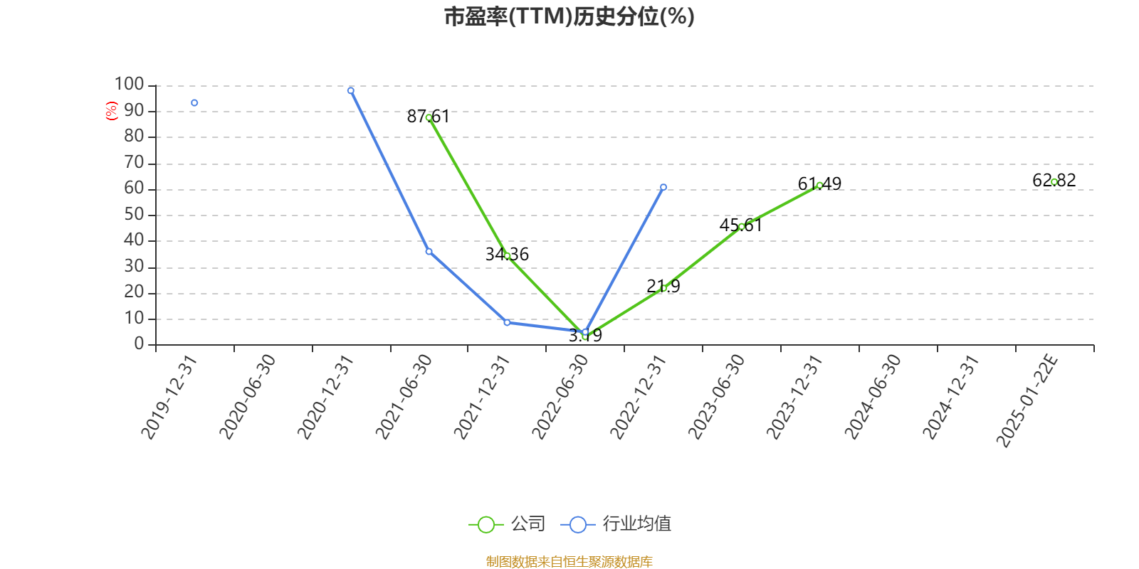 以本次披露业绩预告均值计算,公司近年市盈率(TTM)图如下所示: